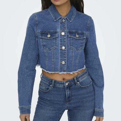 Women's Short Denim Jackets Blue Color New Stylish Plain Fashion Design Woven Stripe Decoration Women Denim Jacket